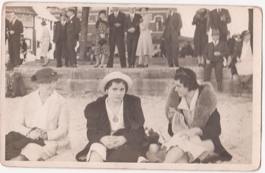 I love this photo of the thre ladies sitting on the beach chatting and mum knitting. I wonder how she kept the sand out of her wool? I think they are at Balmoral Beach because that seems to be where we always went. It must have been winter hence the coats and fur collar. I love the look of everyone behind them parading around on the promenade. I wonder if one of them is Dad. They probably couldn’t get there without him. How uncomfortable sitting on the sand in stockings.