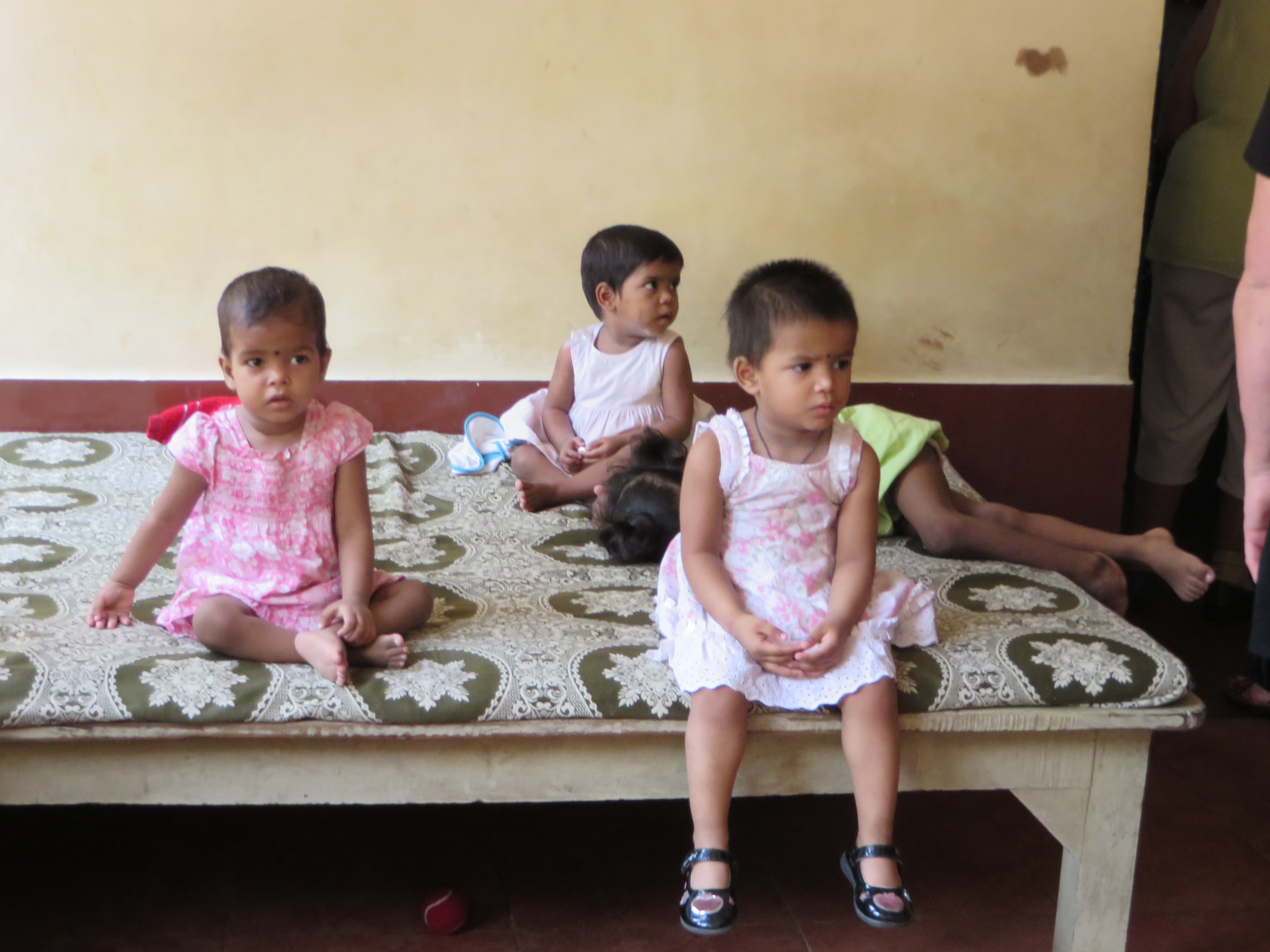 New babies crying in their cots with no one allowed to pick them up. Little ones just sitting on the floor with no toys. Then there were big kids nicely dressed in their Sari. One was in a wheel chair made of wood like a square box chair with just little wheels under the legs. I took their photo for them and they both had a look at themselves and had a giggle just like teens.