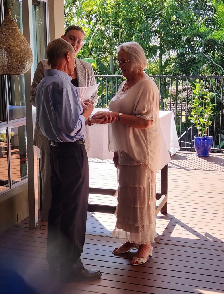 It was 26 degrees on the deck so quite hot for a winters day so we actually had to stand in the shade for the actual ceremony. The Celebrant was Paige Mengle when were found they Google and she was great everything went smoothly without any hiccups.