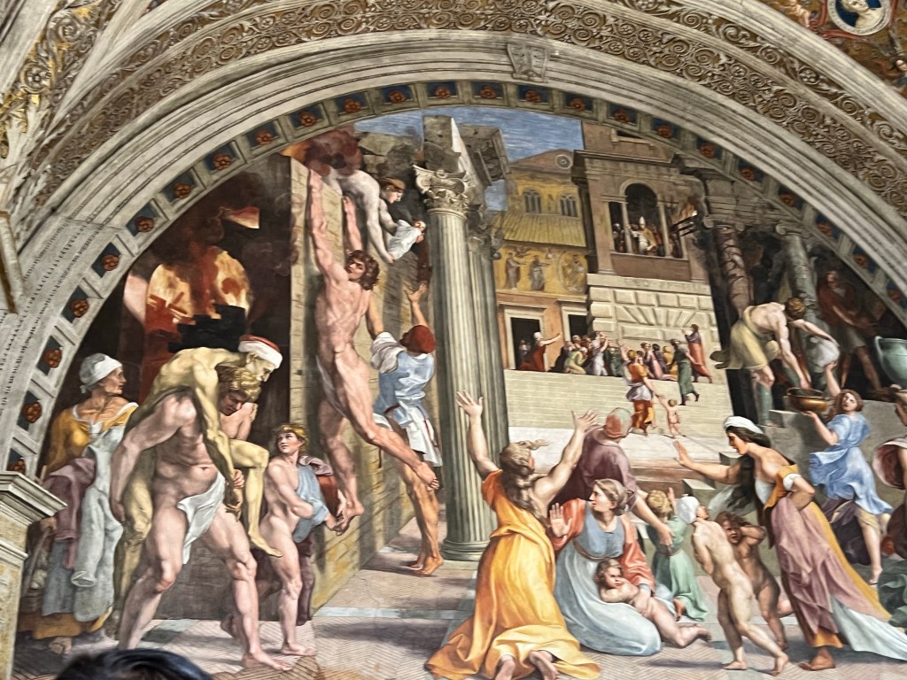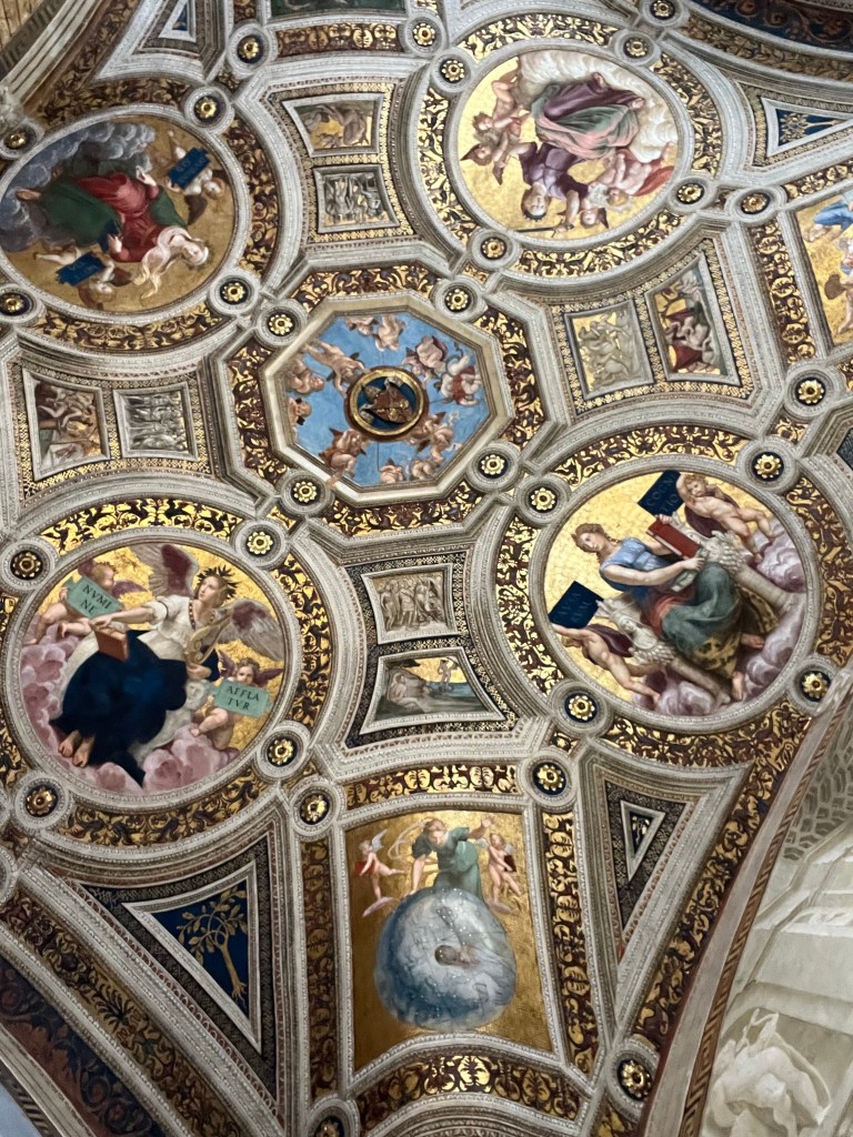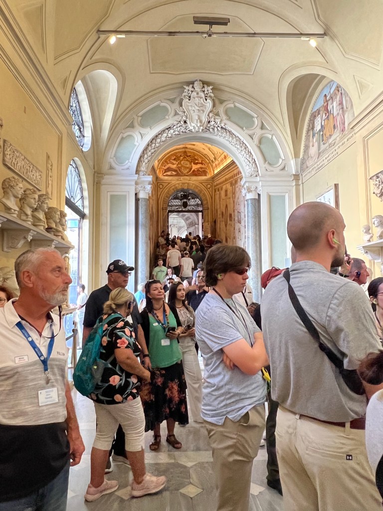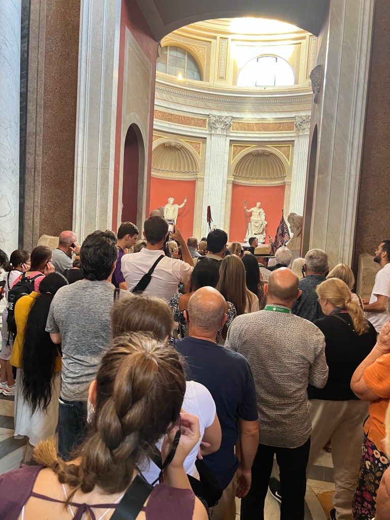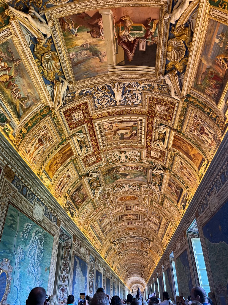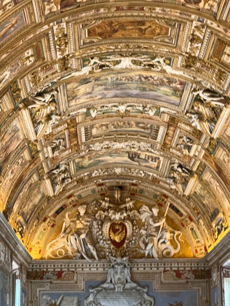 Today we visited the Vatican Museum with a wealth of artistic treasures and then onto the spectacular Sistine Chapel. I don’t think I need to write too much about this it was amazing. However that said so to were the crowds. So many people queues stretching for ever just waiting to get in and fortunately we did not have to wait long as tickets were pre purchased. Inside the place was so crowded you really couldn’t see much and I didn’t realise when we had actually reached the Sistine Chapel that we were actually there so I actually got a couple of photos of the ceiling which is not allowed. We were packed in like sardines and couldn’t see a thing other than the ceiling. I suspect this is where I probably got COVID from.